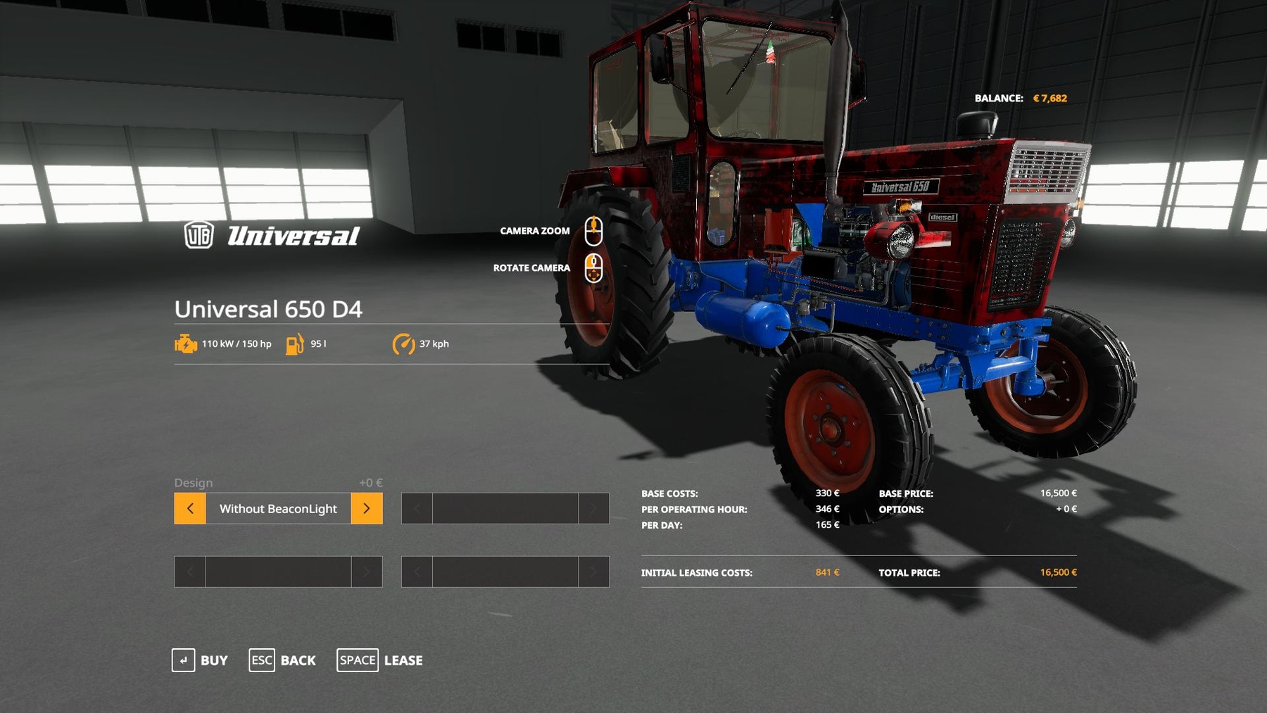 UTB Universal 650 D4 Romanian Tractor Fully converted from FS 17 to FS 19 Power 150 hp, max. speed 37 km / h, the price of 16,500 euros, lighting, dashboard animation.