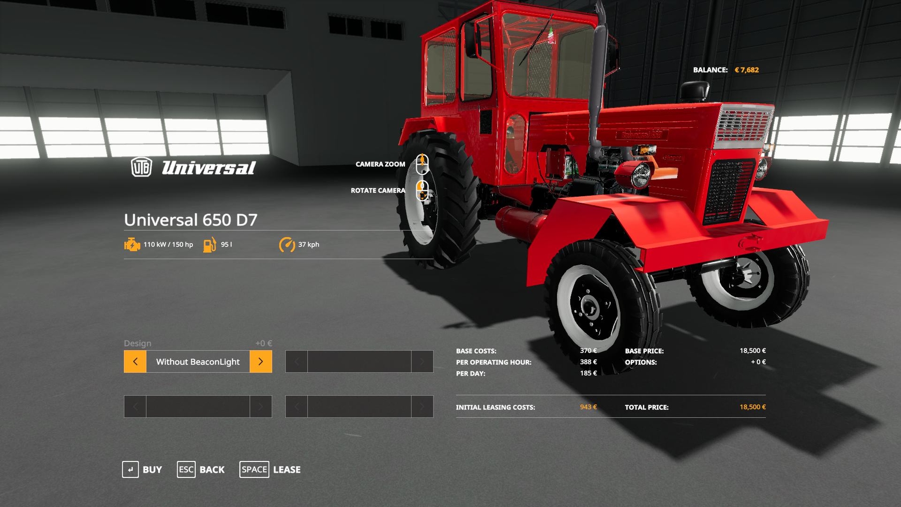 UTB Universal 650 D7 Romanian Tractor Fully converted from FS 17 to FS 19 Power 150 HP, max. speed 35 km / h, price 18,500 euros, lighting, various animations.