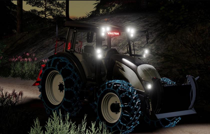 Changes: - Edited driving behavior - Suspension seat installed - shine on the steering wheel and wings removed - Valtra sign light front + Valtra logo at the back - Added forest chains - animated windshield wiper - darker exhaust smoke