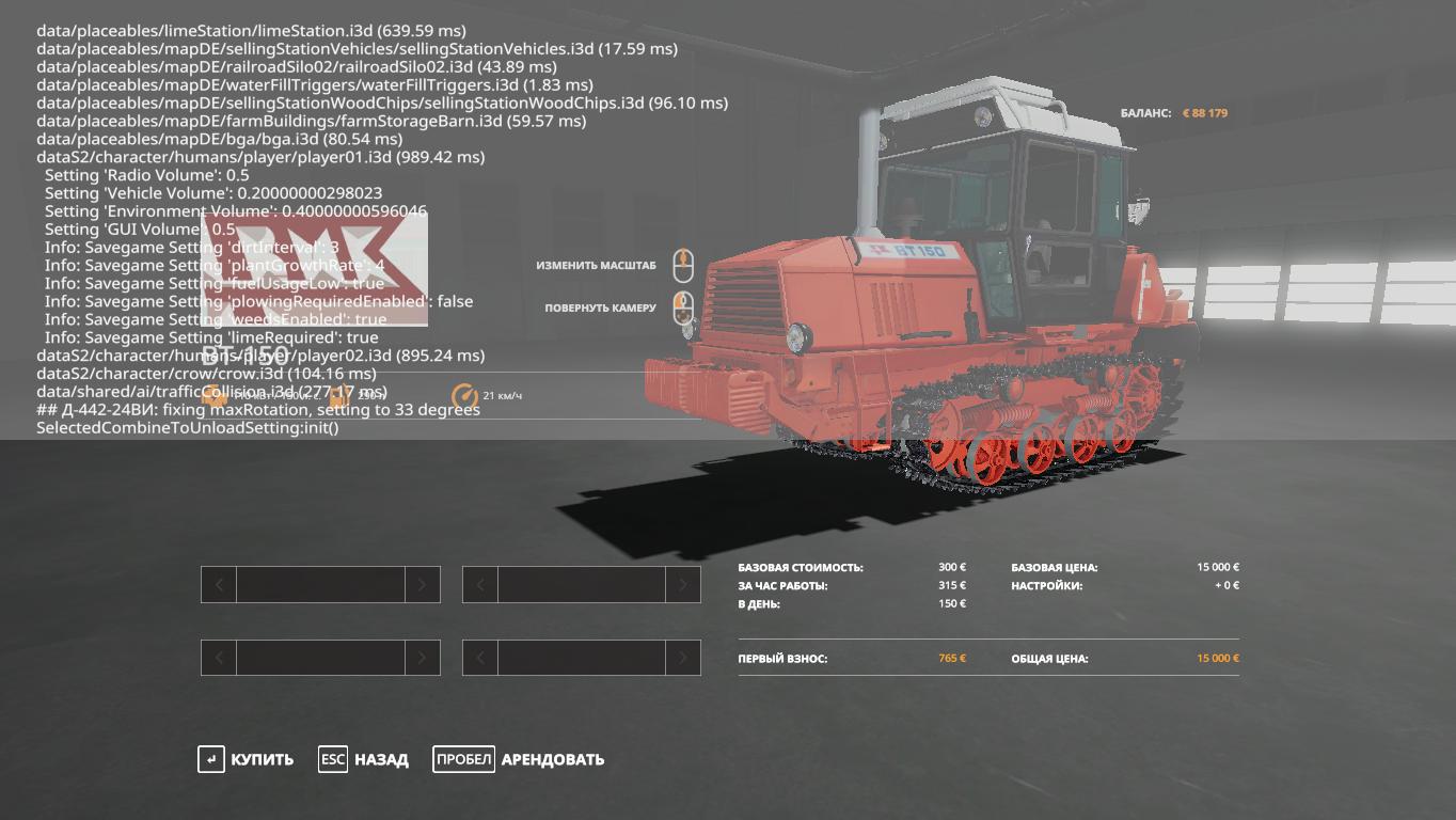 Price - EUR 15,000 Max. speed - 21 km / h Power - 150 hp Fuel tank - 290 l. Authors: nevan, MAC, yurovich, vladimir, Silak_68, cer5840, Ilyukha FS19: Sanek DERZ