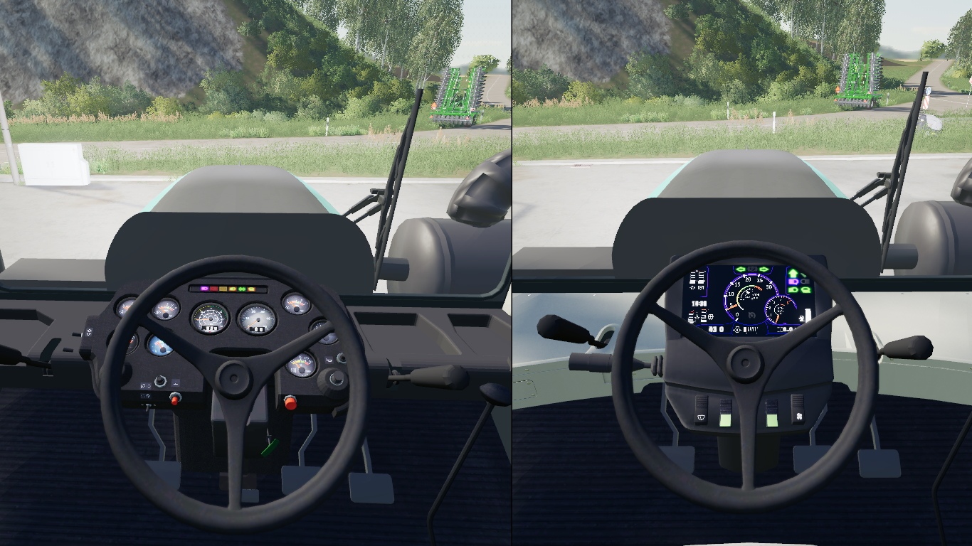 All standard FS-19 functionality has been implemented: equipment hoses, instrument lighting, real light, trampling crops and their beating.