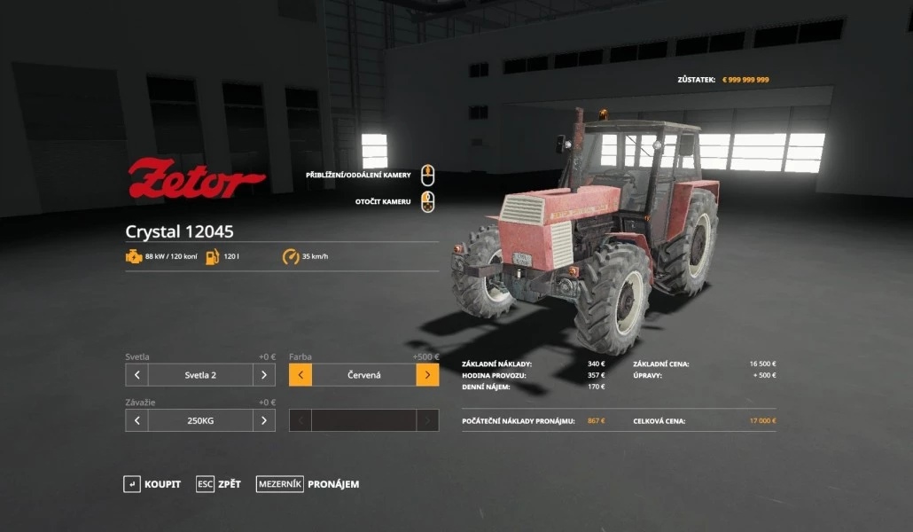 Mod Zetor Crystal 12045 v1.0.0.0 for Farming Simulator 2019 Power 120 HP Speed 35 km / h The mod has a fully functional dashboard, light configuration, snapping configuration, color configuration. The log is clean !.