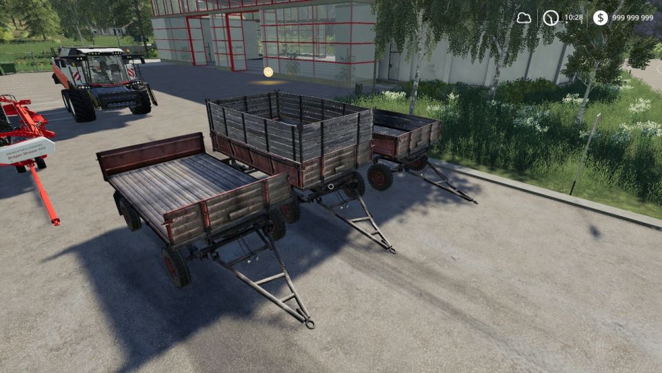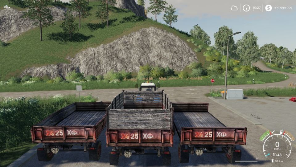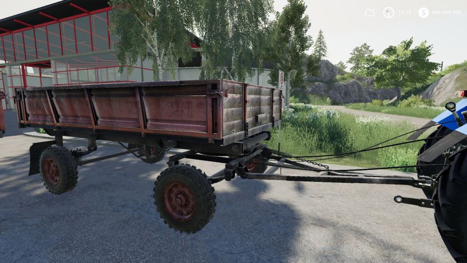 The trailer has 3 configuration options: 5,000 liters - standard weights., 11,700 liters - for hay, straw, chops, etc., an option - a platform with fastening straps. Dynamic hoses. Working lighting. Collisions of the sides (you can carry firewood). Unloading on 3 sides (the platform is disabled). Price - 2 500. Soiled and washed. Changes v 1.3: Credits: Aleksejka |