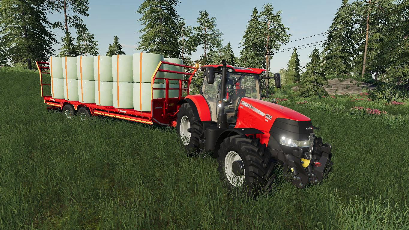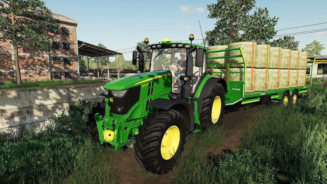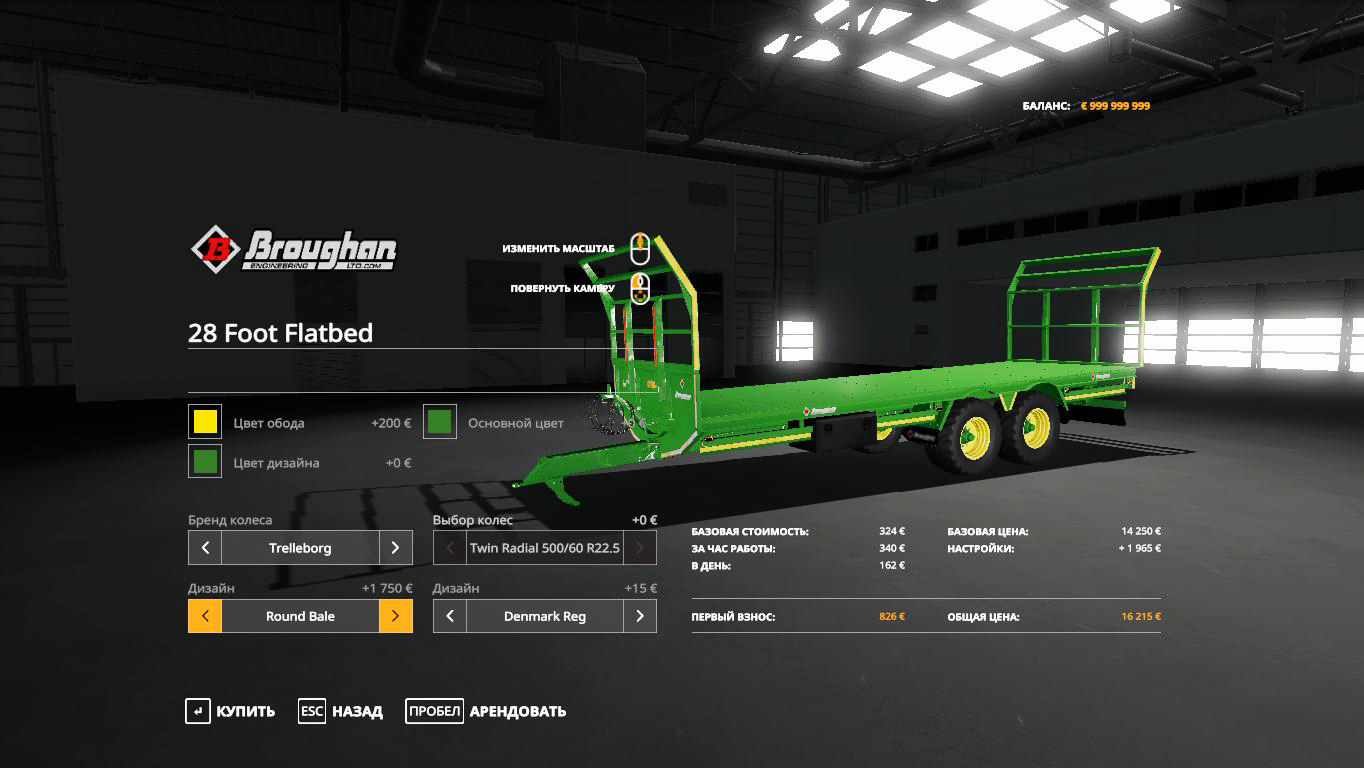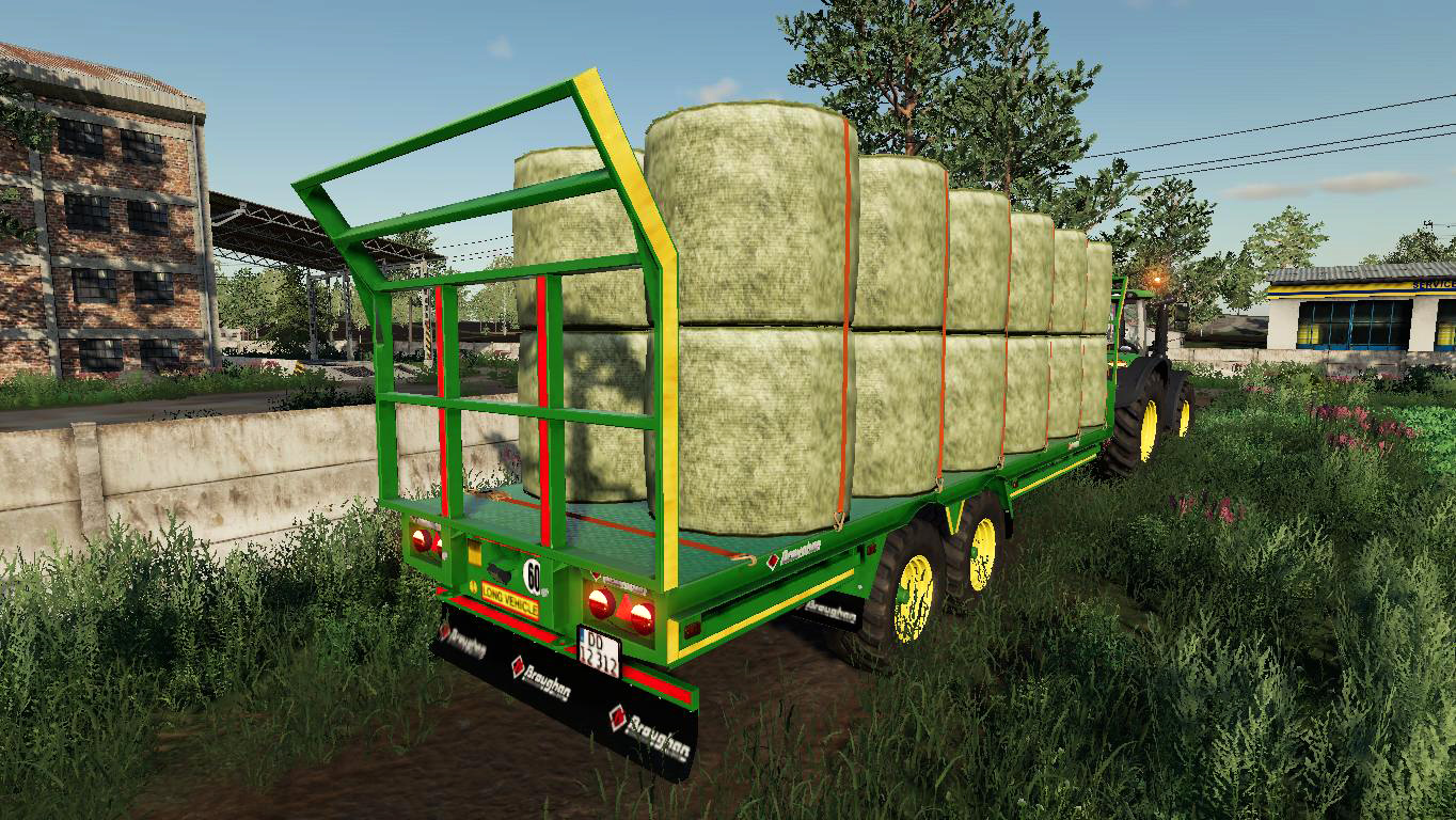 MOD BROUGHAN 28 FOOT BALE TRAILER AUTOLOAD V1.0.0.0 FOR FARMING SIMULATOR 2019 Round bale autoloader trailer. Choice of color (main, design, wheels), choice of design, choice of wheels, choice of license plate, belts. Dynamic hoses, lighting technology, washable.