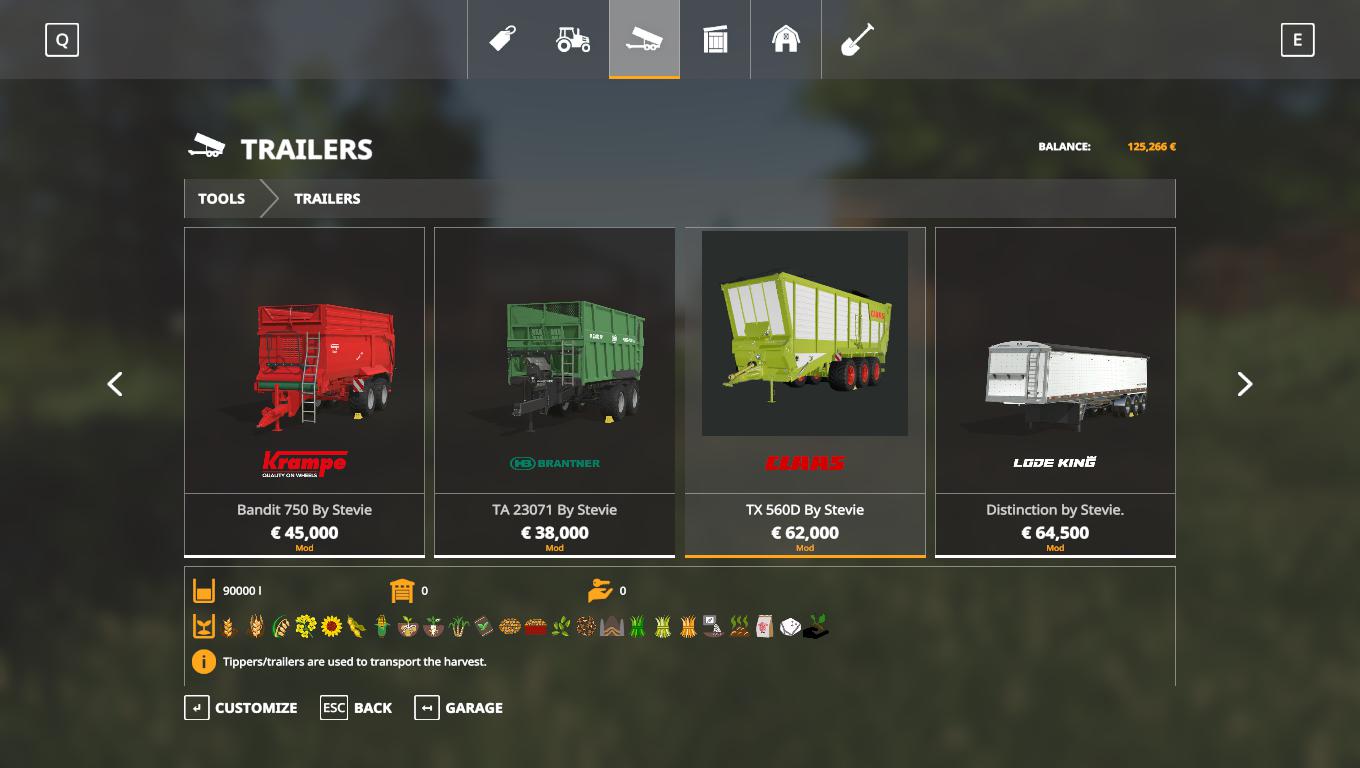 Мod Claas skinned TX560D Bulk Trailer by Stevie for Farming Simulator 2019 Claas trailer with TX560D Bulk awning. Credits: Stevie |