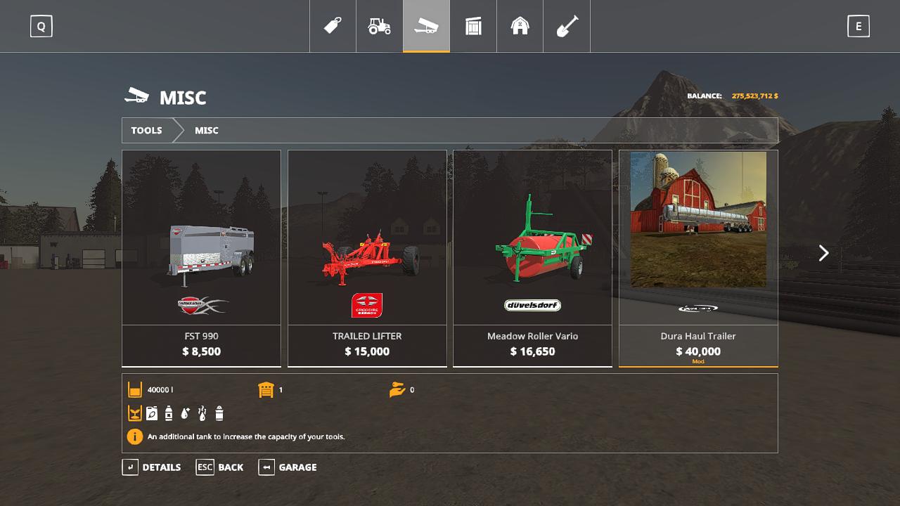 This tank can transport all liquids with a capacity of 40,000 liters. You can find miscellaneous in the category. The price is 40,000 euros.