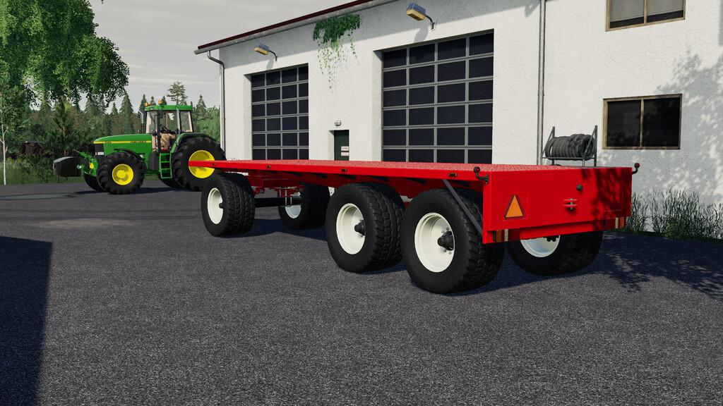 Mod Flatbed Trailer v1.0.0.0 for Farming Simulator 2019 Price: 12500 € Custom flatbed trailer for transporting bales or pallets It has a color configuration and several wheel configurations. Category Trailers