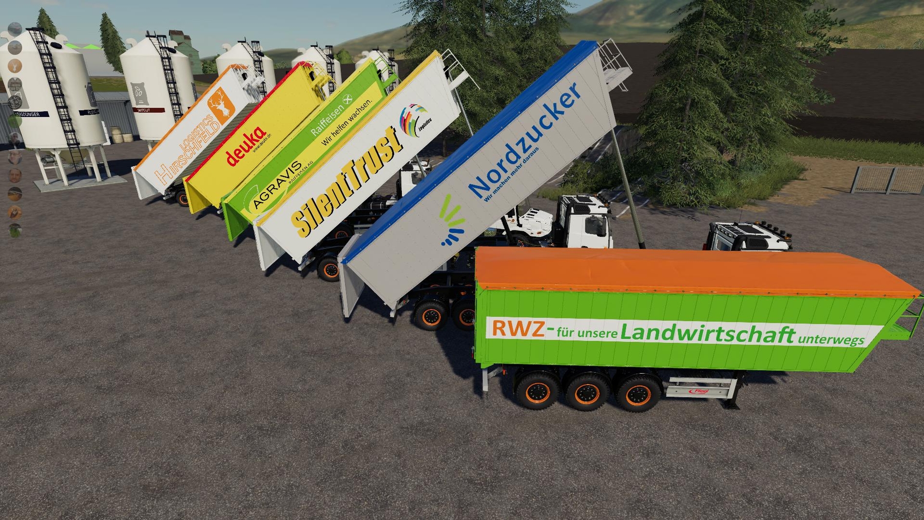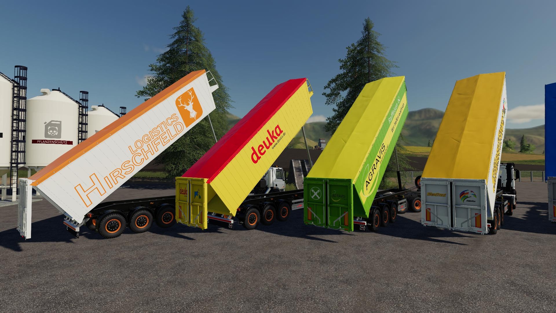 Mod Fliegl 8er Trailer Hirschfeld Edition v1.0 for Farming Simulator 2019 New tipper for Hirschfeld Logistics from Fliegl with a capacity of 49,000 liters and 6 further logo variants. SilentTrust has provided Hirschfeld Logistics with a new tipper from Fliegl. The trailer has 7 variants including: Hirschfeld Logistics, Raifeisen, Nordzucker, Deuka, Agravis and more. Here are the values of the trailer: Credits: Agarwen |