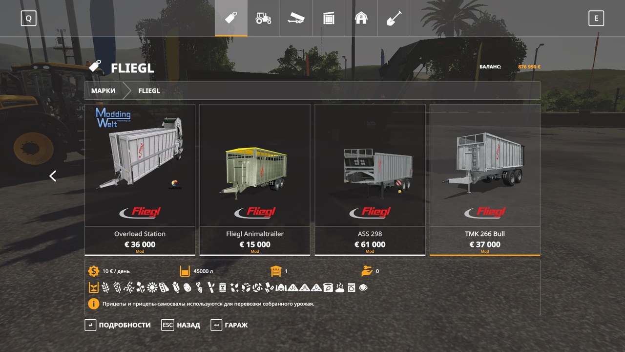 Fliegl Trailer Pack for FS 19 1. Fliegl Animal Trailer 2. Fliegl TMK 266 Bull 3. Fliegl ASS 298 4. FLIEGL SDS 350 5. FLIEGL Overload Trailer 6. Fliegl DPW180