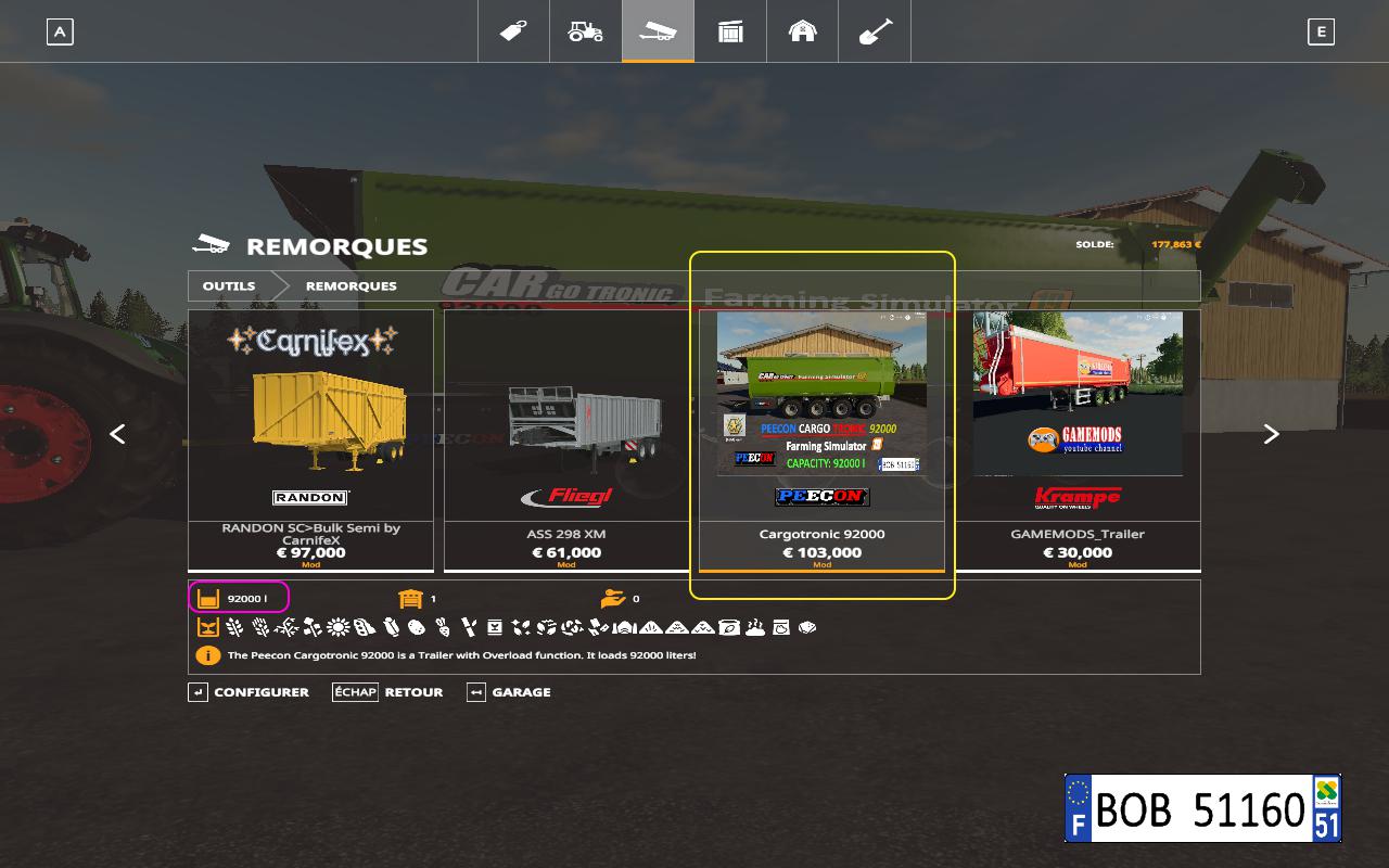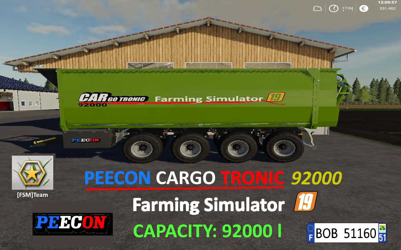 The trailer PEECON CARGO TRONIC 92000 for FS 19. Trailer capacity: 92000 l. The price is 103,000. Credits: FSM Team / BOB51160 |