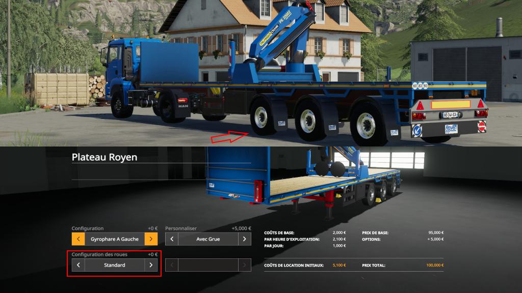 MOD FTMODDING SEMI-PLATEAU ROYEN V1.0.0.0 FOR FARMING SIMULATOR 2019 Functionality in the game, lifting axle, functional crane as on FS15, placement of stabilizers with pillows, belts. The tray has the following configurations for purchase, here is the list: (Mod for PC only) Credits: Sphinx / Dada Modding |