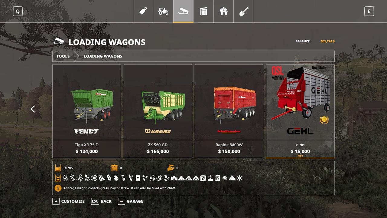 Мod Gehl 980 dual axle v1.0 for Farming Simulator 2019 This versatile stern trailer holds 30,000 liters and works great. The cost in the store is 15,000. Credits: QSL modding |