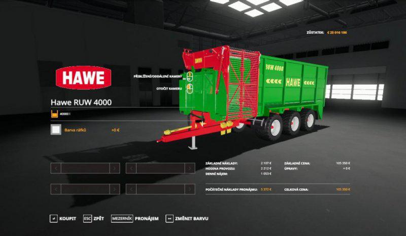 MOD HAWE RUW 4000 V1.0.0.0 FOR FARMING SIMULATOR 2019 Price: 105350 Capacity: 40,000 Types of filling: sugar beets, potatoes