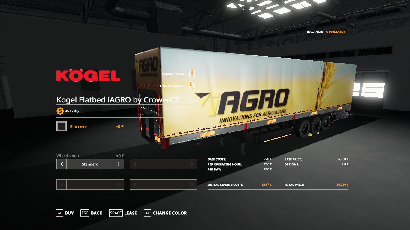 MOD IAGRO KOGEL AUTOLOADER TRAILER V1.0 FOR FARMING SIMULATOR 2019 When you’re tired of stacking bales manually, you can let the Autoload function do its magic. This trailer accepts square bales, round bales (several versions), pallets, egg boxes, and even cotton modules. Here are the most used keyboard shortcuts: Z = Toggle between the available products to load. You can do more to control the unloading positions other than choosing a side (left, right, or to the rear of the trailer.) You can move the unloading marker in many directions, once you’ve picked the side. See the F1 help menu for more keyboard shortcuts. Flexible Unload Marker You can do more to control the unloading positions other than choosing a side (left, right, or to the rear of the trailer.) You can move the unloading marker in many directions, once you’ve picked the side. See the F1 help menu for more keyboard shortcuts. Moore Goodies Once you’ve loaded the trailer, you can add a cover to protect the load. And when you want to load the trailer manually, you can unfold the sidewalls for easier access (by pressing the “N” key on your keyboard.) And yes, the trailer has a rear hitch, making it possible to make a (really) long road train… Here are some cold, hard facts about this useful FS19 mod: Note that the trailer is found in the Baling Technology category, not among the trailers. Credits: CrowerCZ |