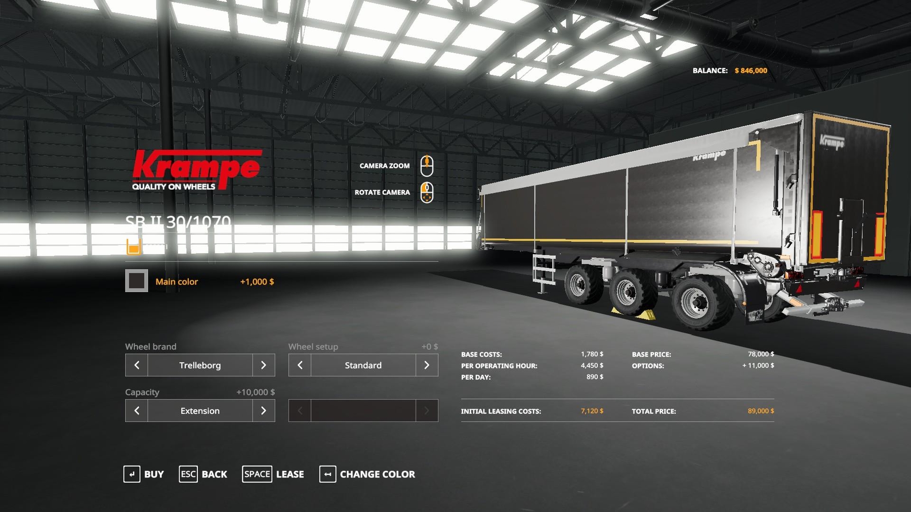 update: the tailgate of the dump truck is adjusted so that it no longer clings with the trailer attached to the rear. Also added the 2nd expansion of the size of 100,000 liters, and also adjusted the speed of discharge. 7500 on the dump truck, 5500 on the grain trailer. I added a trailer hitch to the rear of the trailer so that several trailers could be pulled behind them with the help of a trolley. The capacity was increased to 60,000 liters with an additional extension that would increase it to 90,000 liters. Added color choices if you don't like Krampe Red. The log is clean. Credits: Giants Software/Xetoa |