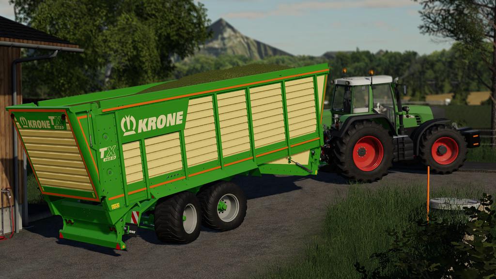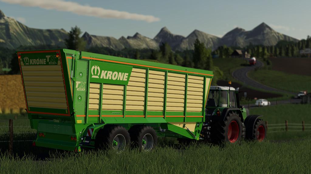 The Krone TX 460D is a chaff transport wagon which through its sloping