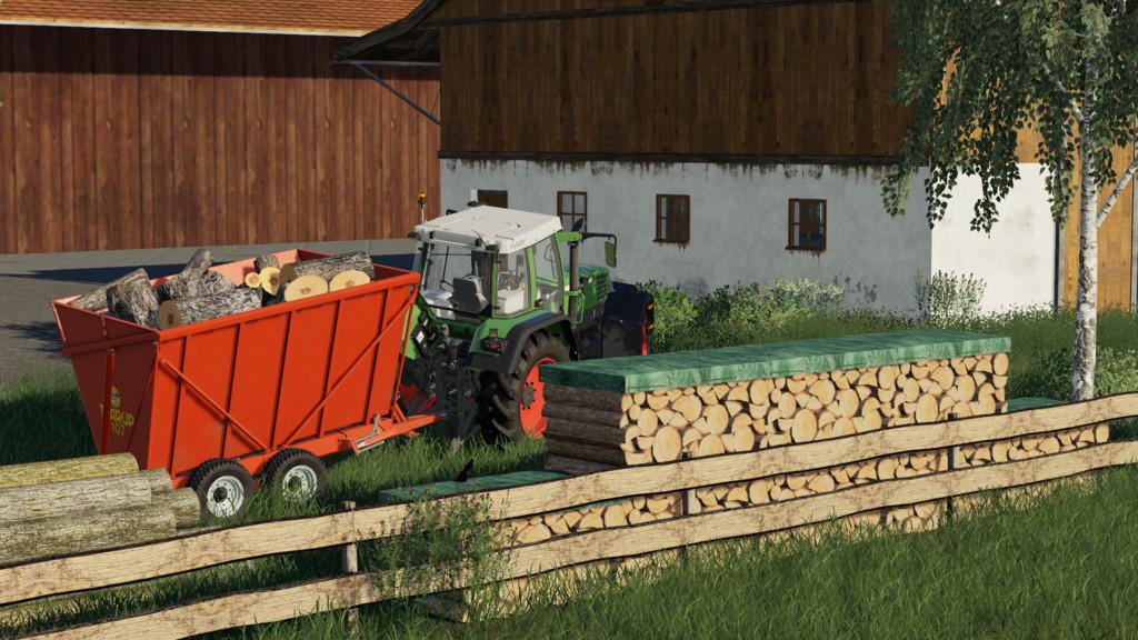 But it can also be used as a auger wagon, mainly for seeds, fertilizer and lime, or to cart potatoes or sugar beets to the edge of the field or to the storage system (Grimme RH 2460). You can also use it in forestry to transport small logs to your farm or tip them directly into a wood chipper (JENZ BA725D).