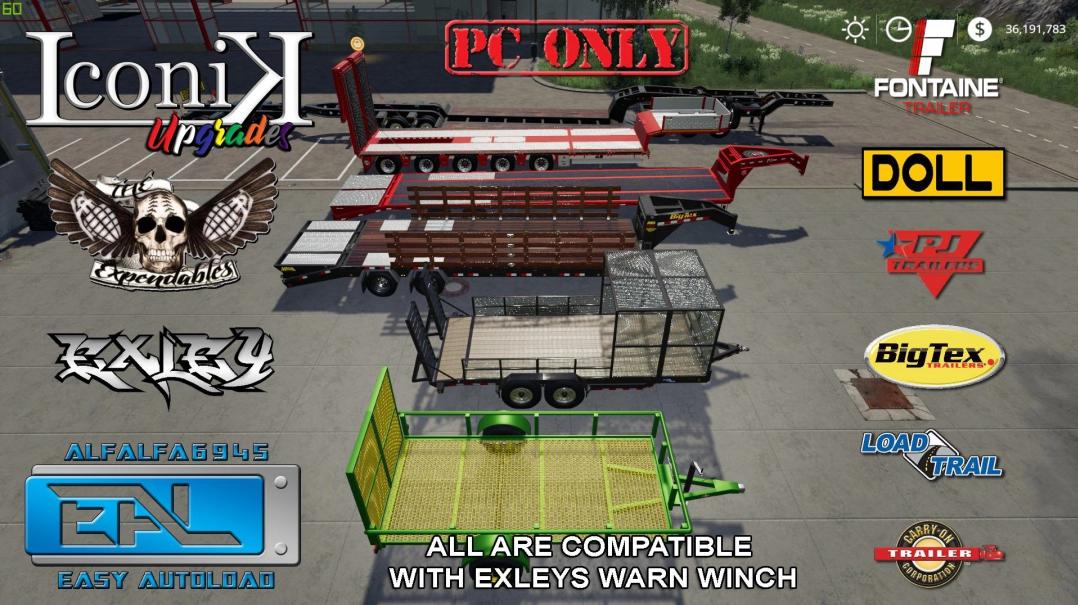 MOD LANDSCAPE TRAILER WITH OTHER TRAILERS V1.0 FOR FARMING SIMULATOR 2019 A set of trailers for transporting dynamic objects with EAL script support for automatic loading of bales and pallets. Credits: Exley / Iconik |