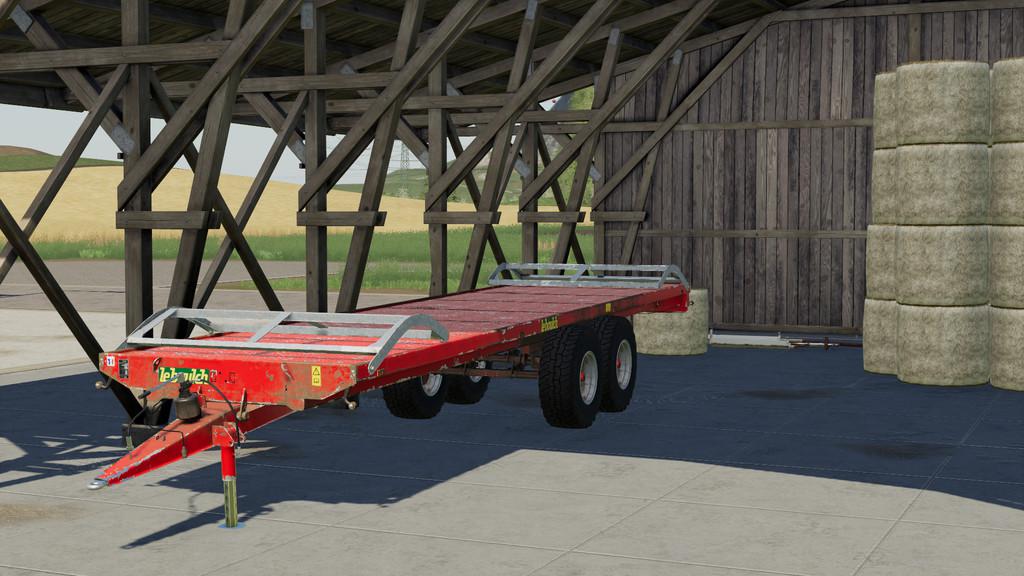 The 100D16 semi-mounted bale trailer, 10m long and equipped with hydraulic brakes, is ideal for carrying round or square balls from the field to the farm. Length: 10 m Credits: SimulatorGAMES |