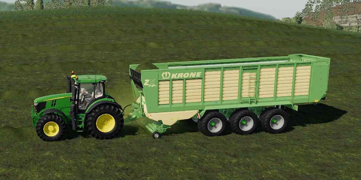 This mod offers a Krone loading cart with a capacity of 56,000 liters for 65,000 euros. Required power 240 HP This is significantly cheaper than a new device, but still a decent amount, roughly corresponding to the reality on the used market. The color of the loading cart is slightly faded, which indicates that it is a used device. |