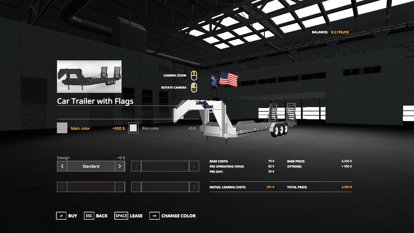 MOD LOADTRAIL TRIAXL WTH FLAGS V1.0.0.0 FOR FARMING SIMULATOR 2019 Price 3000, choice of base color and rim color. Same wheel configuration. Credits: Exley, lance, JAD AUTOCUSTOMZ |