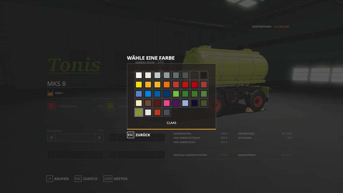 MOD MKS 8 V1.1.0.0 FOR FARMING SIMULATOR 2019 Can load many liquids with a choice of capacity. Credits: Toni / Gaints |