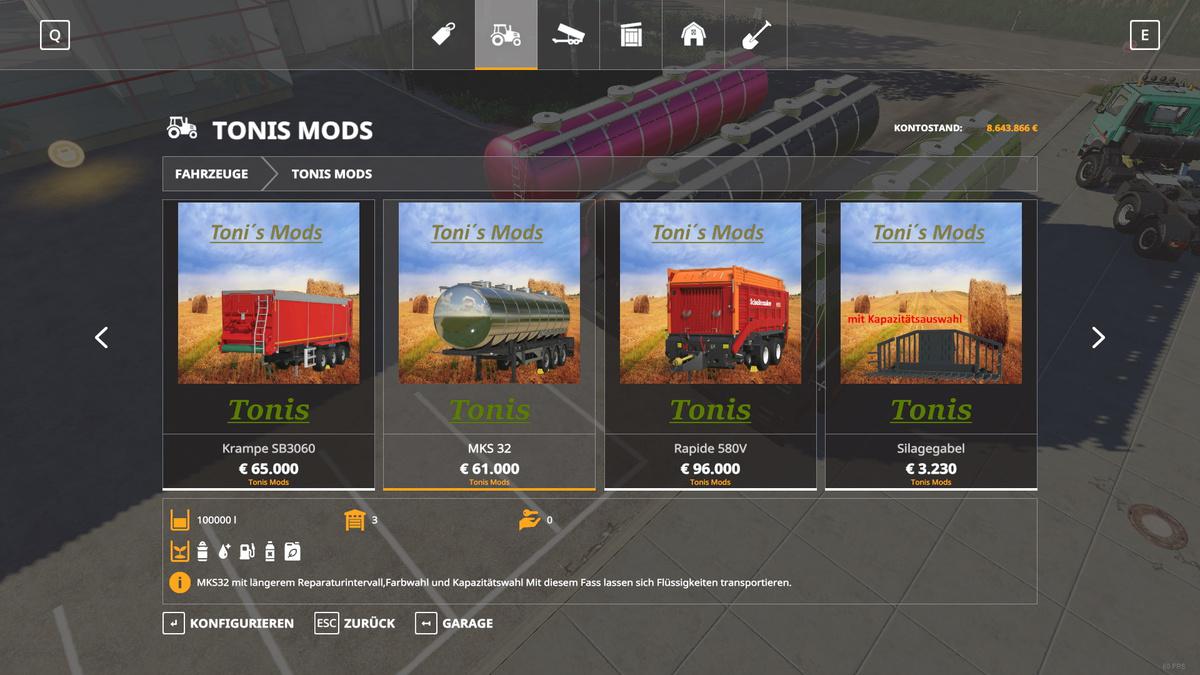 Mod MKS alle Flussigkeiten v1.0 for Farming Simulator 2019 All liquids and tank selection Credits: Toni |