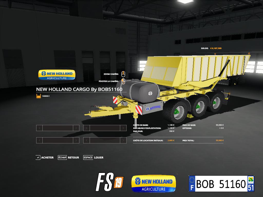 MOD NEW HOLLAND CARGO BY BOB51160 V1.0.0.2 FOR FARMING SIMULATOR 2019 Credits: BOB51160 |