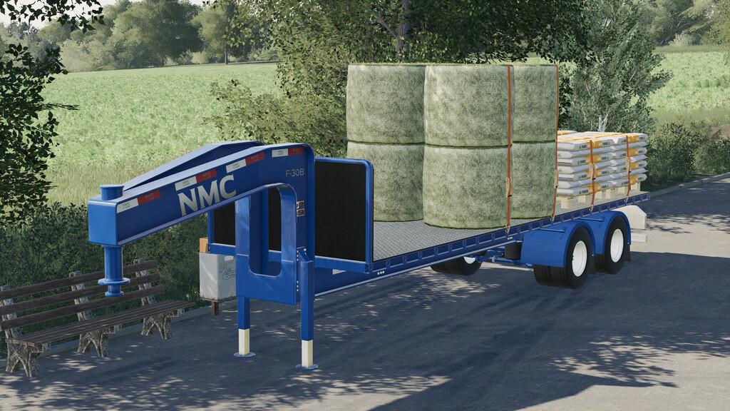 MOD NMC GOOSENECK F-30B V1.0.0.0 FOR FARMING SIMULATOR 2019 This is a heavy trailer for anyone looking to use pickups to move bales or pallets without a truck. If you have a truck and need a small trailer, this will work for you too. With long cargo space and straps, it will fit most things without dropping them. It is 10 feet longer than the F-20B. Credits: North Modding Company |