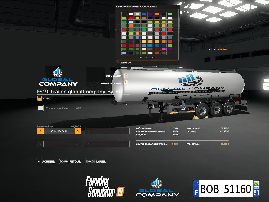 MOD PACK TRAILERS GLOBAL COMPANY BY BOB51160 FOR FARMING SIMULATOR 2019 A package of semitrailers with Global Company script logos, a package of tented semitrailers with auto-loading, a semitrailer dump truck and two tanks. Credits: BOB51160 |