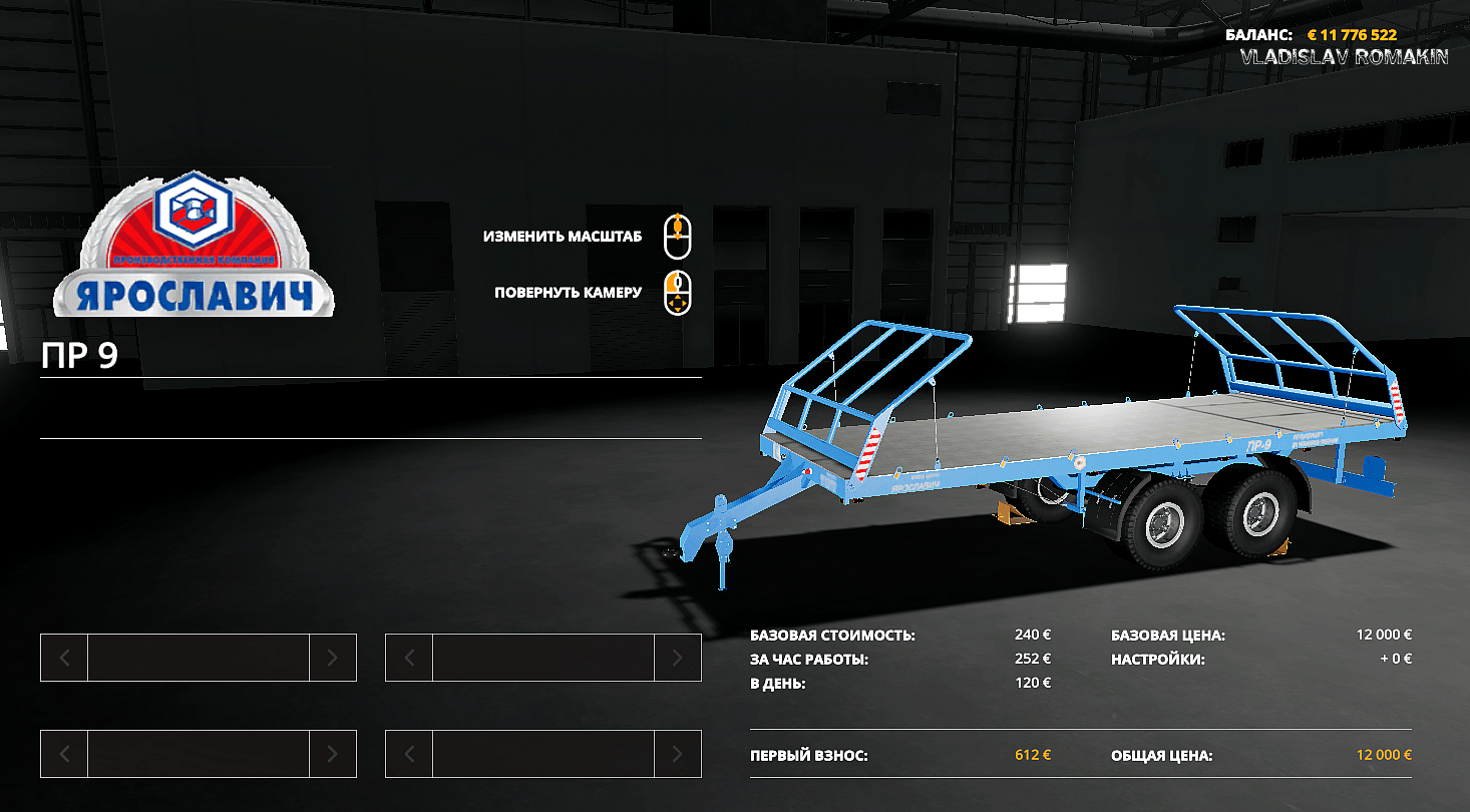 Mod PR-9 "Yaroslavich" V1.0.0.0 for Farming Simulator 2019 - Carries square / round bales and pallets. - NO auto-selection, the load is fixed with belts. - Get dirty / wash / age. - Deformation of tires. - Lighting equipment. FS17: RusAgroTeh (RusAgroTeh) .FS19 (Convert): VLADISLAV ROMAKIN. Credits: VLADISLAV ROMAKIN |