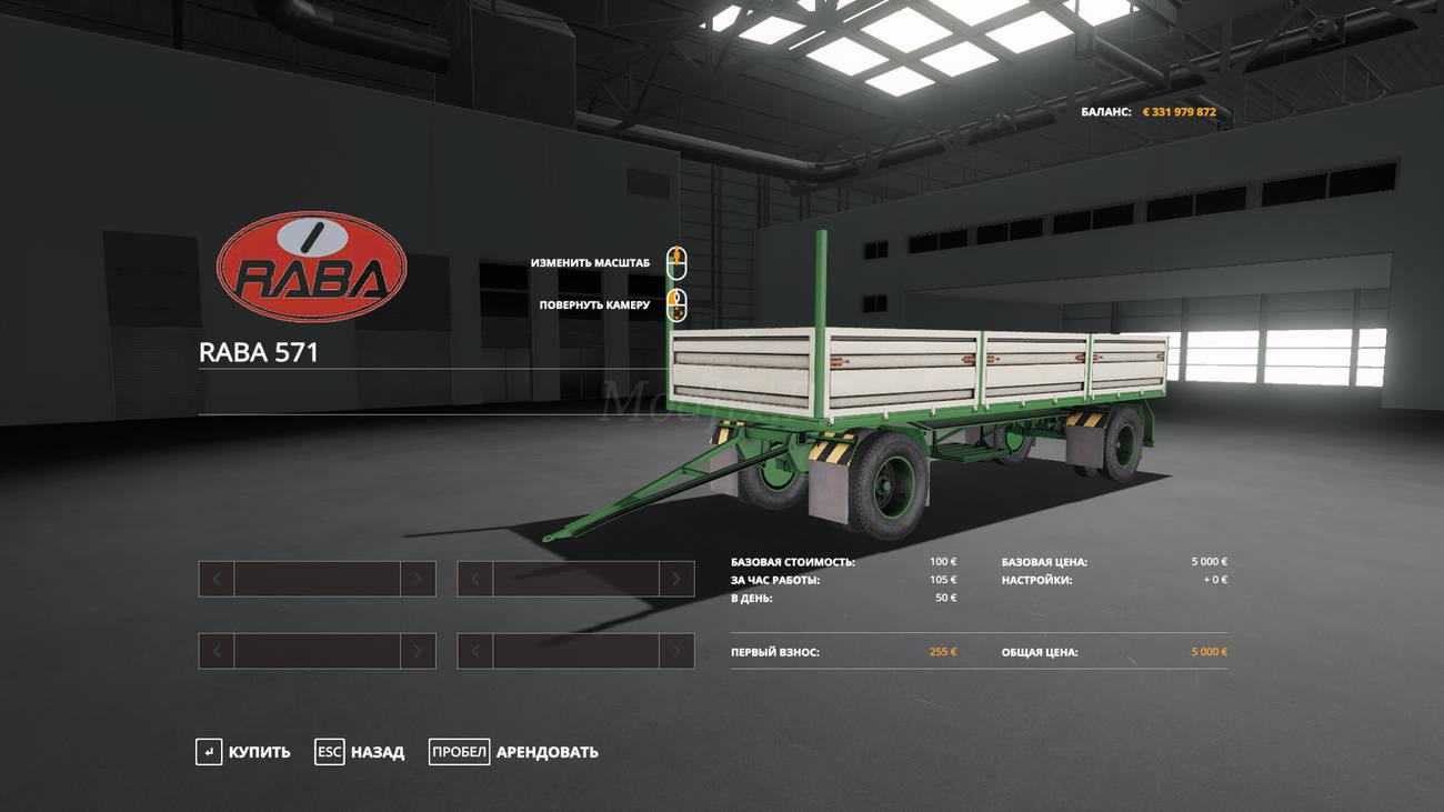 MOD RABA 571 V1.2 FOR FARMING SIMULATOR 2019 The trailer costs $ 5,000, Credits: 3D_Modding_RP |