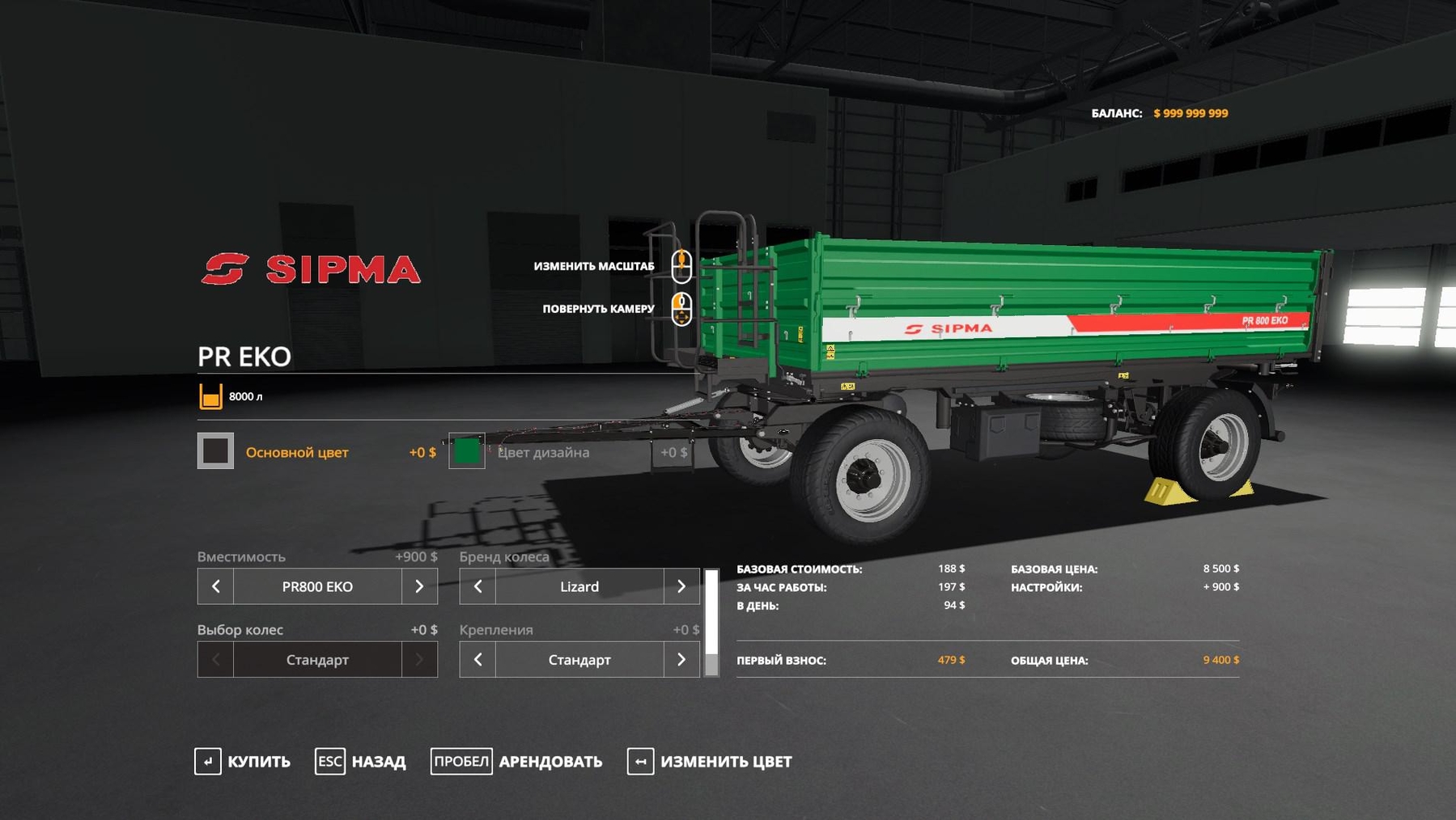 MOD SIPMA PR EKO PACK V1.0.0.0 FOR FARMING SIMULATOR 2019 The package contains trailers: - PR800 EKO: 9400 € Credits: Arikson, conv.Niknab |