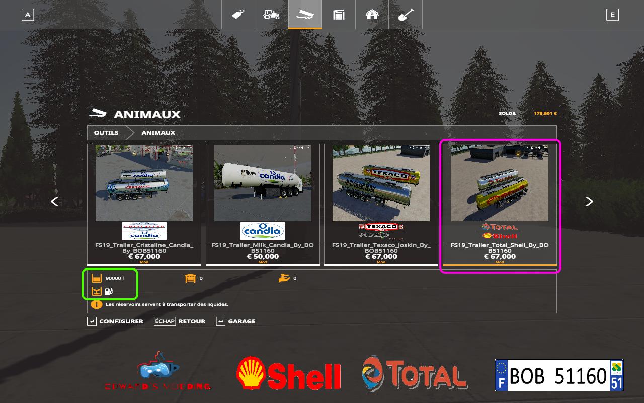 2 trailers Total / Shell. CAPACITY: 90000 l. The price is 67,000. Credits: MAX51160 / Edward`s Modding |