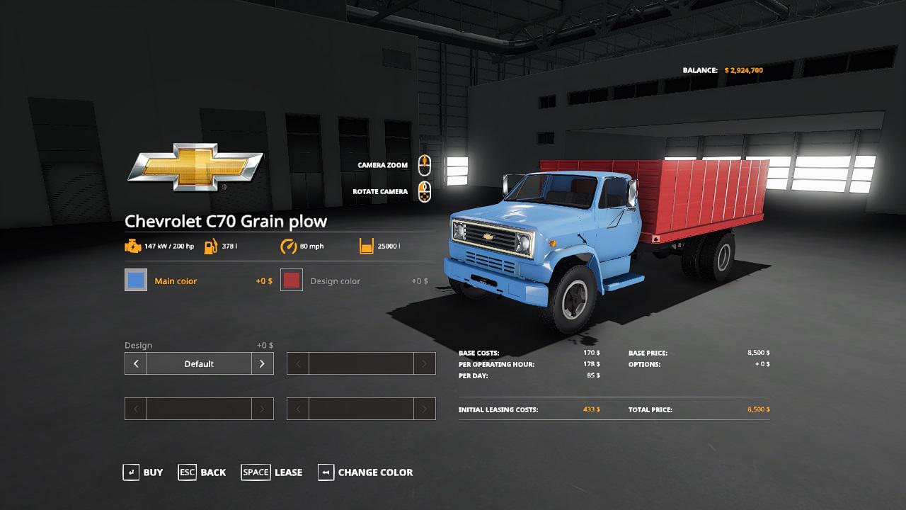 Мod Chevy C70 grain plow truck v1.0 for Farming Simulator 2019 This is a grain truck to which a snowplow is added. Credits: adub modding |