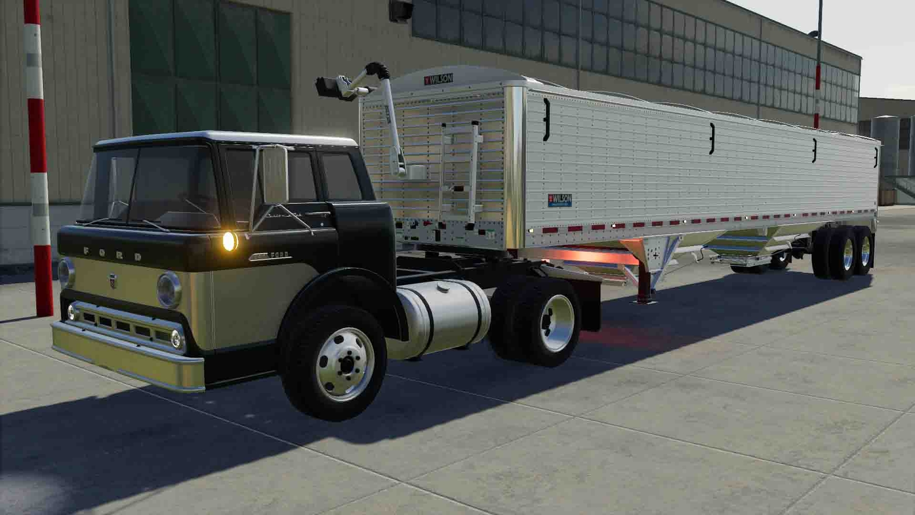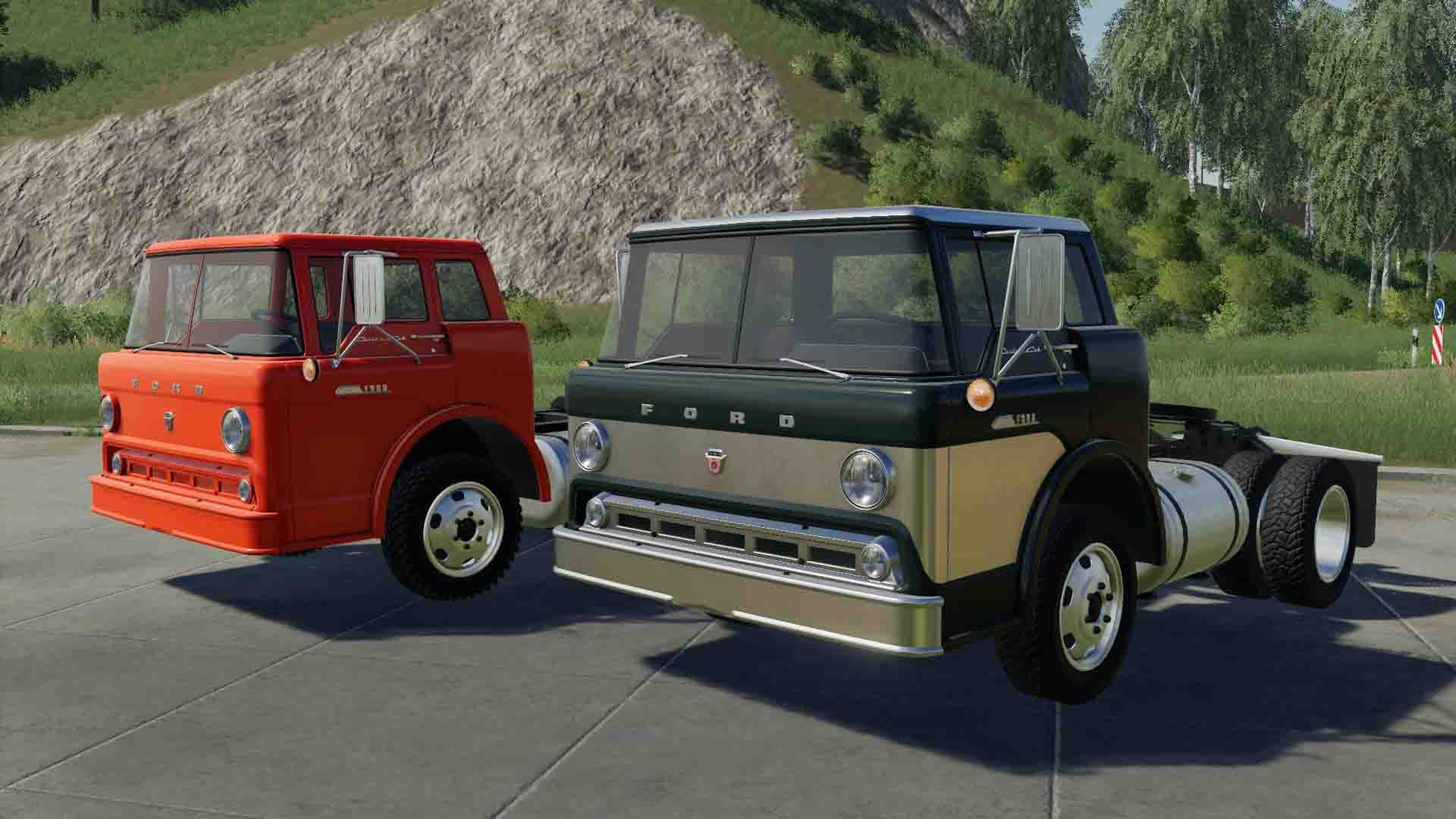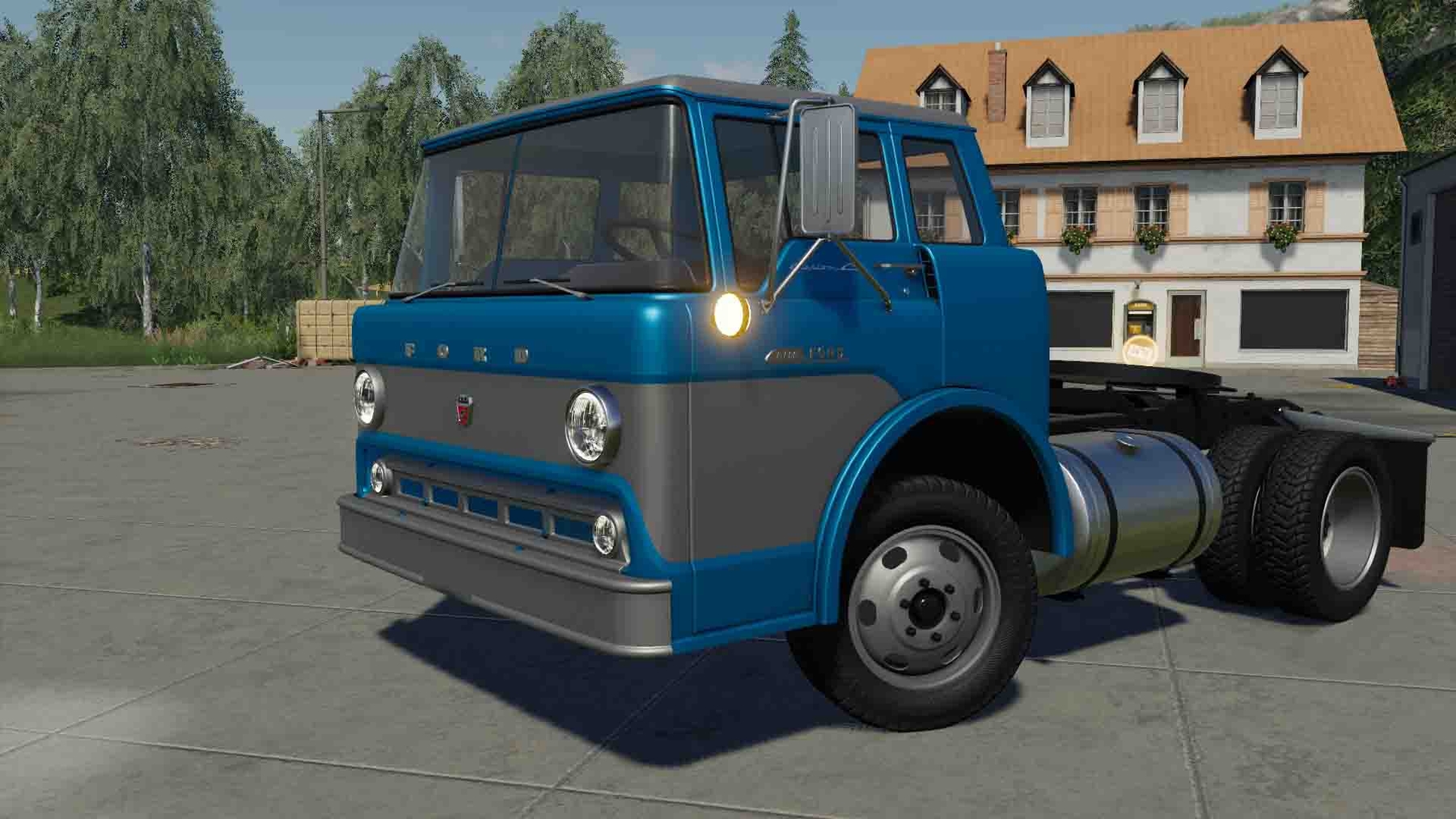 MOD FORD C600 1957 V1.0.0.0 FOR FARMING SIMULATOR 2019 - Speed: 83 km / h; - Fuel tank volume: 880 l; - Cost: 15,000 €; - Choice of the main color; - Choice of design color; - Choice of rim color; - Engine selection; - Choice of wheels; - Animated devices; - Working lighting equipment; - Working mirrors; - Leaves traces.