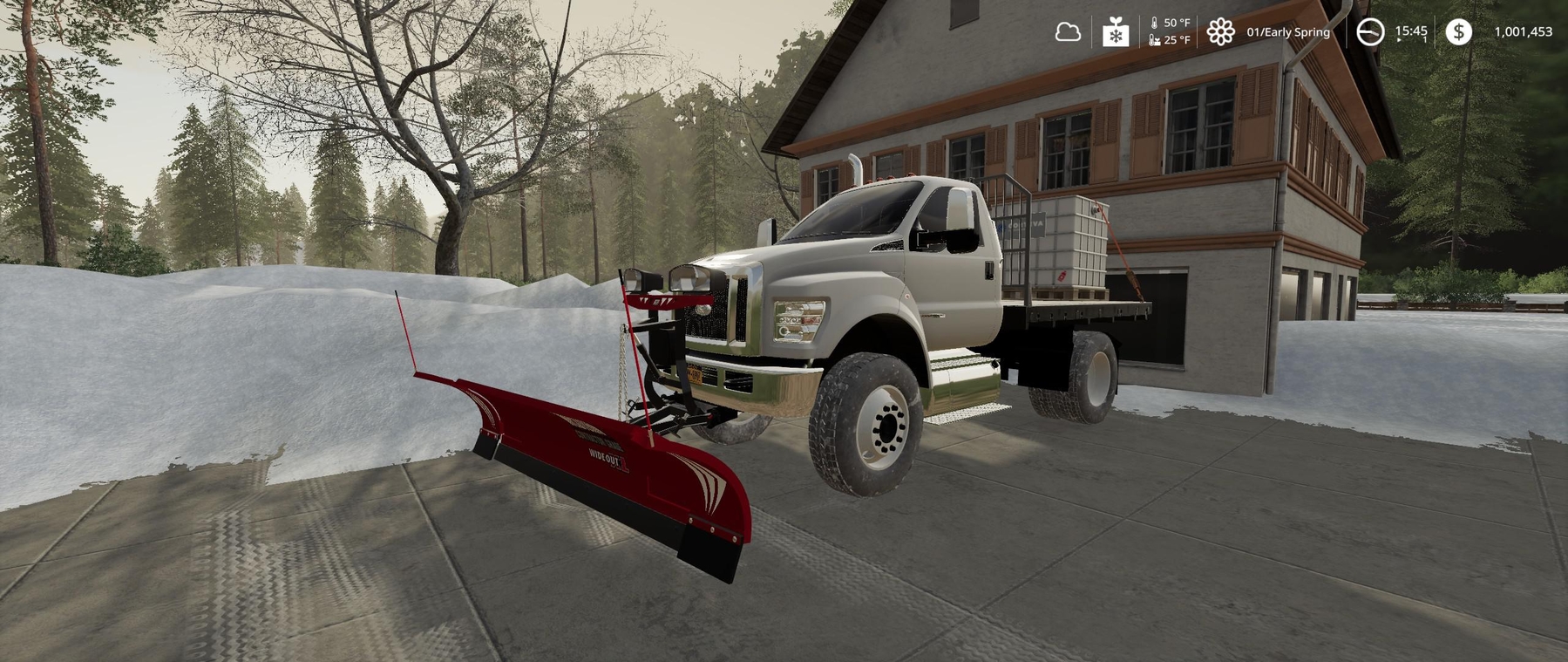 Mod Ford F750 Flatbed Plow Truck v1.0 for Farming Simulator 2019 Dropside truck Ford F750. The truck has a hitch, tension belts and a snow blade mount. Credits: Expendables, WMF |