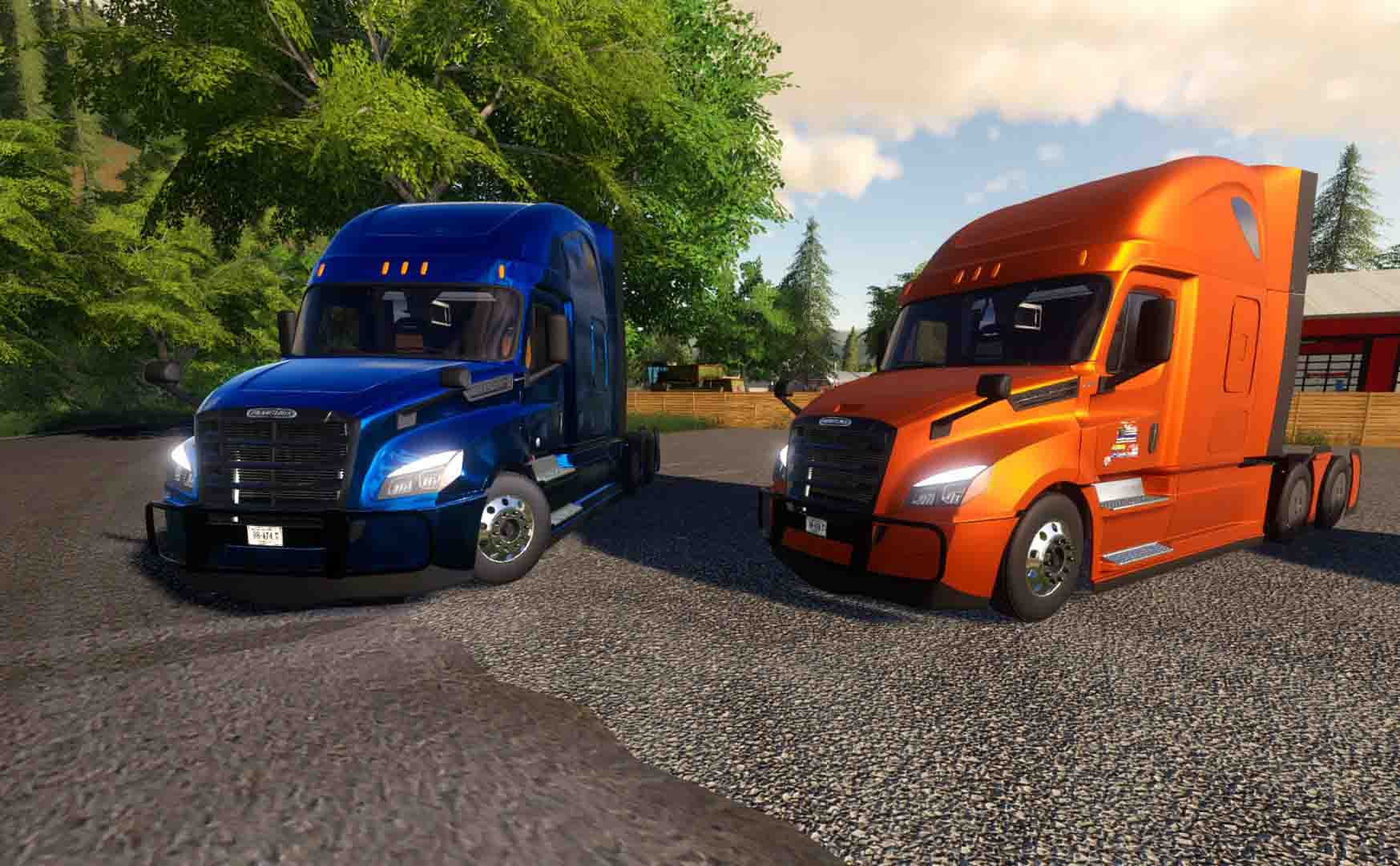 MOD FREIGHTLINER CASCADIA126 2020 V2.0.0.1 FOR FARMING SIMULATOR 2019 - Power: 294 kW / 400 hp; - Speed: 145 km / h; - Fuel tank volume: 90 l .; - Cost: 127 900 €; - Choice of the main color; - Configuration of beacons / racks for the cab; - Configuration of side skirts / bumper; - Configuration of exhaust pipes; - Engine configuration; - Wheel configuration; - Wing configuration; - Working dashboard; - Working mirrors; - Working lighting equipment; - Leaves traces. Changes v2.0.0.1: - Added automatic running lights, like on a real truck, which are activated when the truck is started; - Changed lighting modes; - Added driver window camera, like in ATS; - Reduced the maximum speed to an acceptable value; - Added default colors to bumper color config. Authors: Gamlin (ATS), Hum3D, Expendables (Headache Rack), Whiskey Sierra Modding.