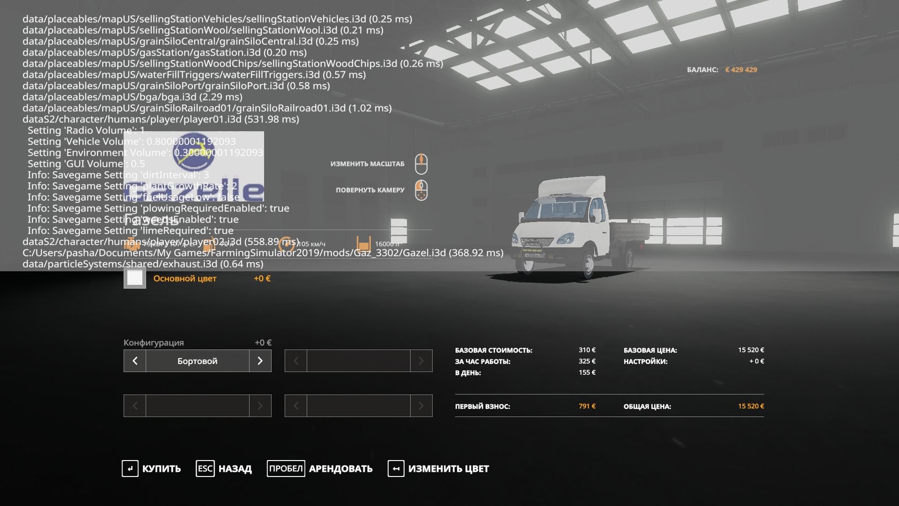 Mod GAZ-3302 GAZelle V2.0 for Farming Simulator 2019 I cleaned the log Replaced the front and rear lights with more real ones I made a choice of the color of the cab and added dirt now it gets dirty I revived the mirrors I completely redid the light Did the grass get crushed Open the doors and the hood Removed the extra Clean up the archive Credits: cheb_mods,Xenobyte,kulibin |