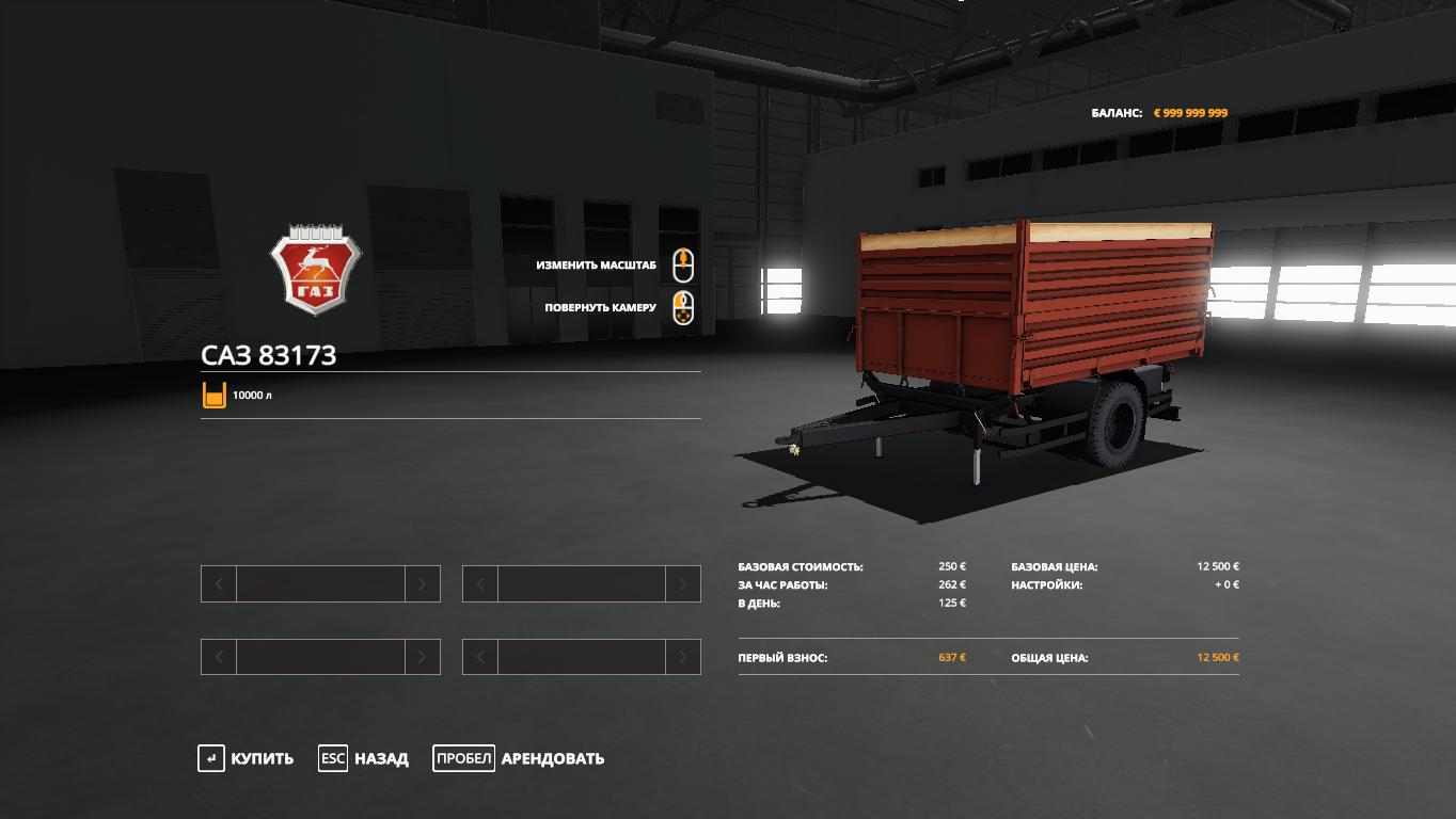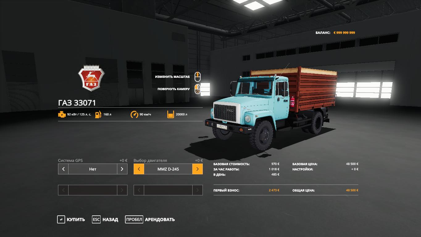 Mod GAZ 35071 and SAZ 83173 V1.2.0 for Farming Simulator 2019 Changes V1.2.0 Changed the texture of the body and cab, removed any trifle from the passenger compartment, changed the light and minor changes. Capacity of 10,000 liters. Two engines to choose from: 125 and 136 hp Max. speed - 90 km / h. Work light, backlit dashboard shows speed and fuel level. Dynamic hoses. Unloading on 3 sides. Realistic suspension, no animation of bridges, but sags under load. Carries standard loads, works with a silo harvester. Only the wheels get dirty. There are working mirrors, but unclear. Authors: Seryoga Zheltok, DANG90, Kiryuha, Rodik, Convert to FS19: Aleksejka, Sanya DERZ. Credits: - |