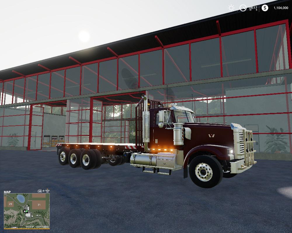 Giants vanilla Hulk edited to become a flat bed. The frame has been extended to accommodate a 24 ft flatbed. The bed is equipped with tension belts and will hold between 15 to 18 large square bales depending on how you stack them. Plus you can load any other pallets and items that can be