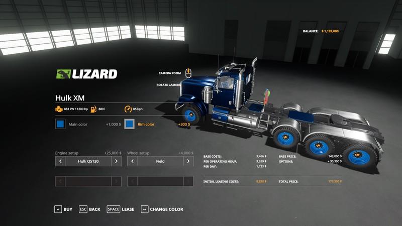 Requires patch 1.2. The Hulk, much improved. Added engines, wheels, colors, pto, attacher. Improved driving and handling. It is now a heavy/overload hauler capable of road, field, and forestry work. Updated for patch 1.2. Credits: Dajoor |