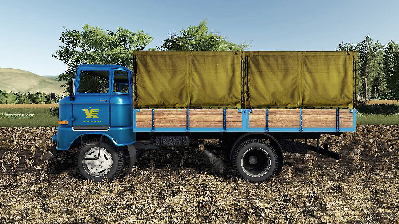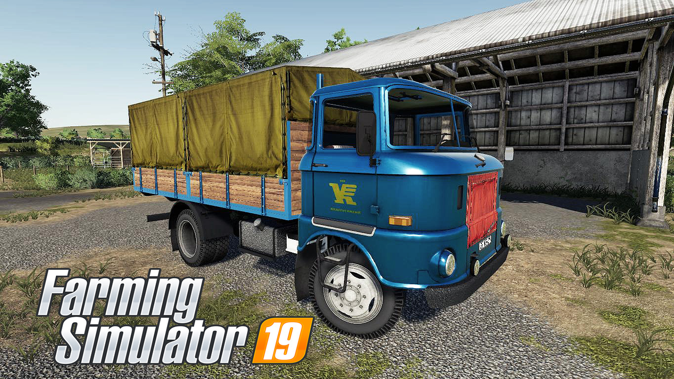 MOD "IFA W50 L / SP MIT UAL V1.0" FOR FARMING SIMULATOR 2019 Auto-pickup truck (bales, pallets). Speed: 76 km / h. The choice of design, animation tidy, propeller shaft and mudguards. Removable awning, belts, trailed. IC: Doors, windows, sunroof, winter protection. Lighting engineering.
