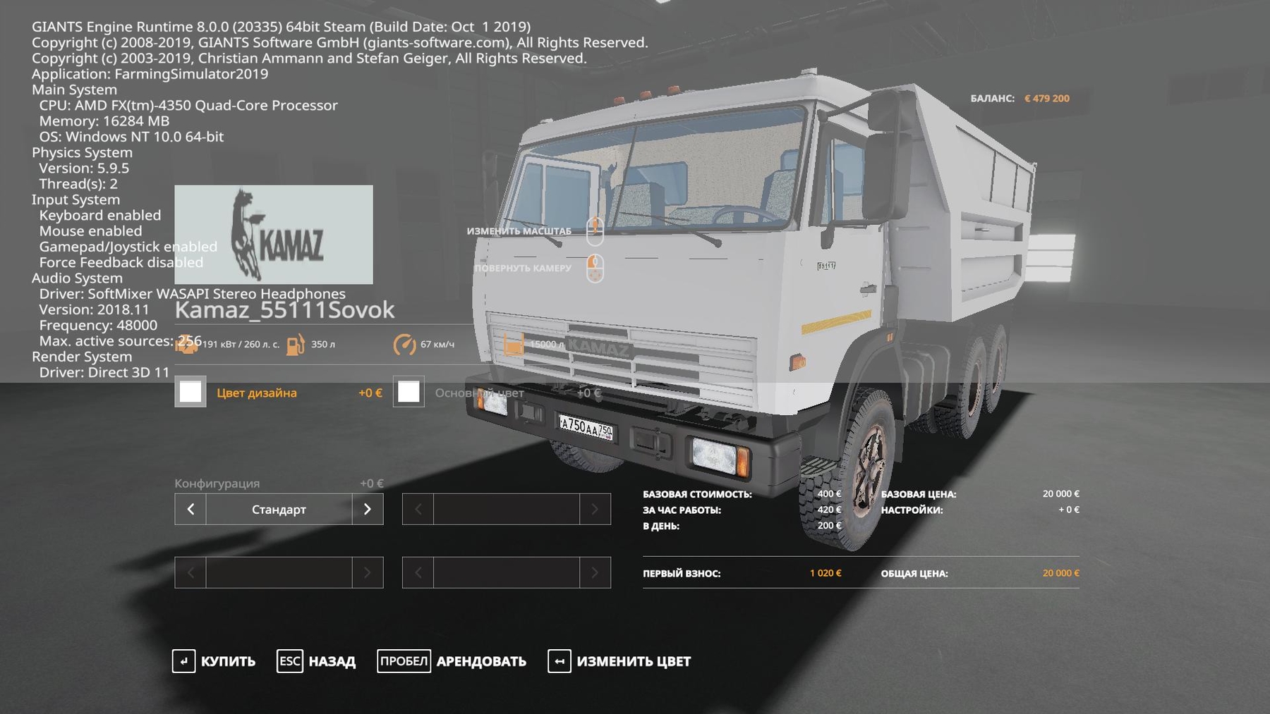 Mod KAMAZ-55111 SAVOK V1.3 for Farming Simulator 2019 Credits: Сергей Смирнов FS19:MakSoN |