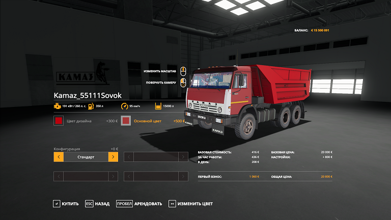 Mod KAMAZ 55111 Scoop V1.2.0 for Farming Simulator 2019 KamAZ-55111. Power: 260 HP / 191 kBt. Maximum speed: 95 km / h. Fuel tank capacity: Z50 liters. Price: 20,000 euros. A choice of cab colors and body color. Working light. Operating panel. MIRROR WORK. Animated Chips. It gets dirty and laundered. Trailer Nefaz-8529. Price: 9,200 euros. A selection of colors. Working light. Animated Chips. It gets dirty and laundered. Credits: Сергей Смирнов, FS19: MakSoN |