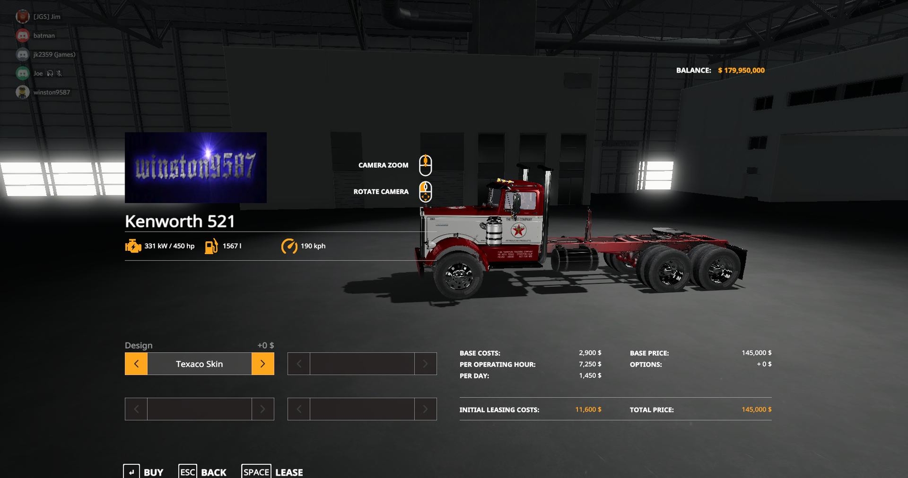 Price 145 000, power 450 hp, fuel tank 1567, 5 skins to choose from. Credits: winston9587 |