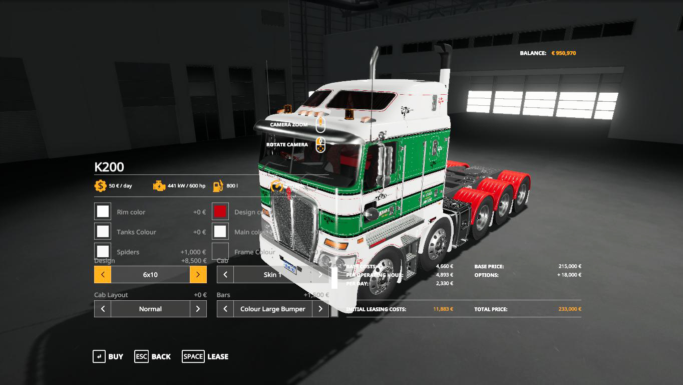 MOD KENWORTH K200 V1.0.0.0 FOR FARMING SIMULATOR 2019 Power: 600 l / s, speed: 100 km / h. Choice of color, design and tuning. Animation of devices, lighting equipment, beacons.