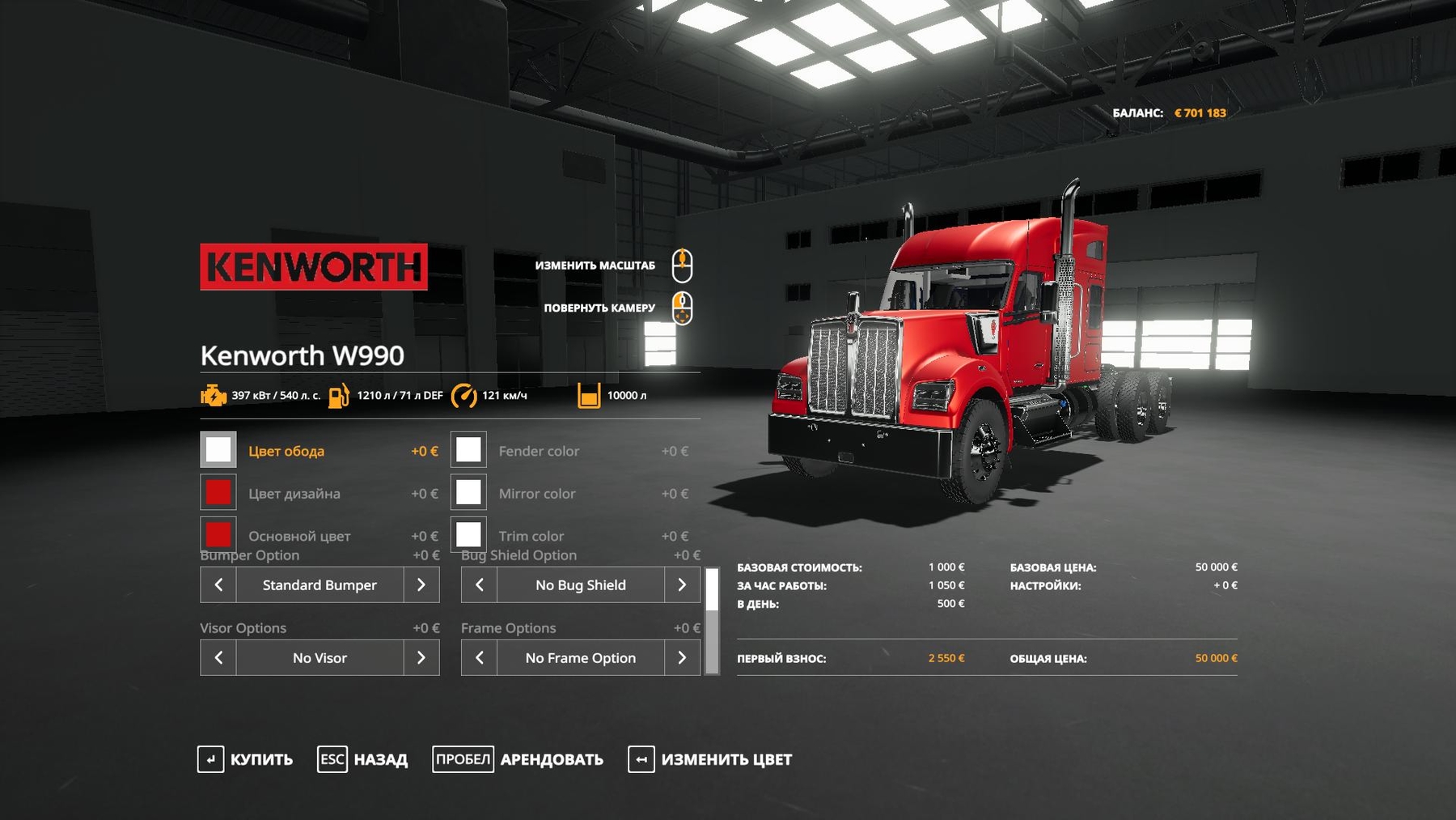 Mod KENWORTH W990 V2.0 for Farming Simulator 2019 Corrected tidy, now it is readable Made the steering wheel size real Fixed the camera in the cockpit Changed sounds