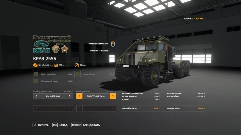 - There are 2 engines to choose from: authentic YMZ-238 for 240 forces and its modern modification YMZ-6585-04 for 420 forces (believe me, no longer needed, 1962 Nm of dragging in any situation).