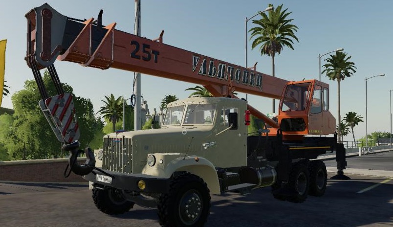 Kraz 258 - truck crane. The Kraz 258 chassis from the author Karl911 was taken as a basis and I remade it for the Ulyanovsk crane installation. The crane installation itself was completely converted from FS17 and configured by me. - The chassis and crane are fully animated, absolutely everything works: light, cleaning, gearbox, pedals, mirrors, bridges, cardans, suspension, boom (including the boom telescope), supports, cables, hook (hook), etc.;